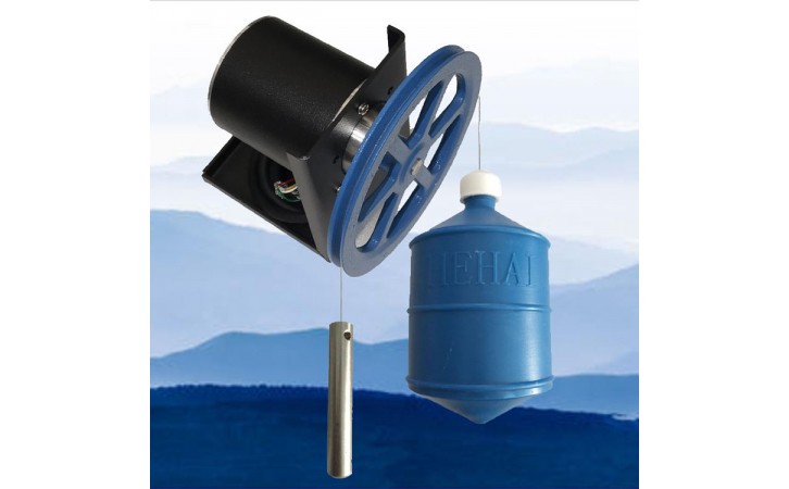 其工作原理就是:水位传感器测轮安装在编码器输入轴上,钢丝绳一端连接浮子、另一端连接重锤,钢丝绳绕在测轮上。当液位发生变化时浮子随液位的变化而升降,钢丝绳带动测轮转动,编码器输出相应的实时水位值。